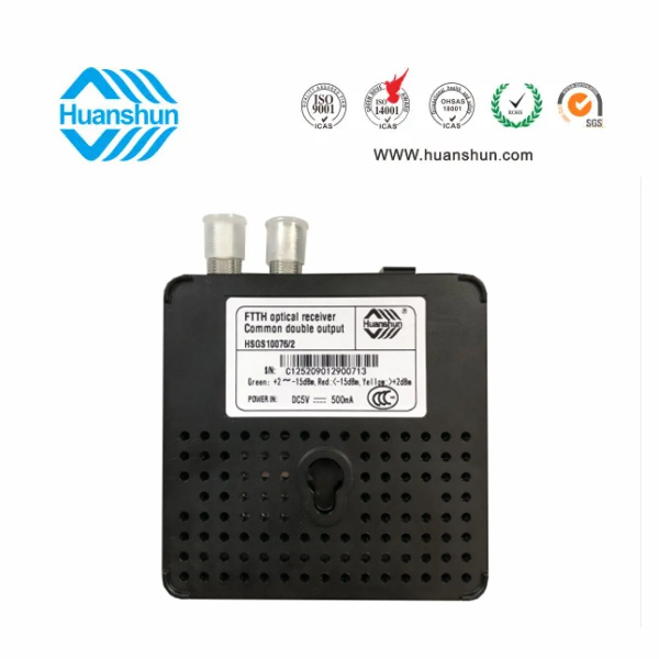 普通型雙輸出光接收機 | HSGS10076/2 | 1290~1565nm接收,-5~-15dBm/RF 2×72dBuv恒定輸出,外接90~255V 5V 0.5A電源適配器 |