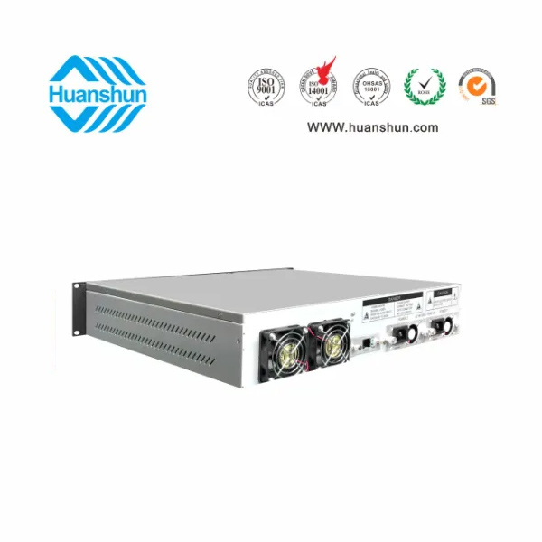19 " 2U/3U標準機箱,-5 ~ +10 d Bm輸入,8路標稱規格(16、17、18、19、20、21、22、23dBm)放大輸出,并支持下調-2dB,安全連接模式,NF ≤ 5dB(0dBm時);內置FWDM合波器,插播損耗 ≤ 1dB;雙模塊熱插撥電源,AC90 ~ 255V或DC-48V供電,RJ45標準網管(支持SNMP、WEB)