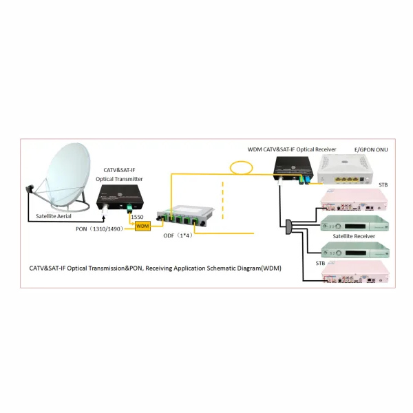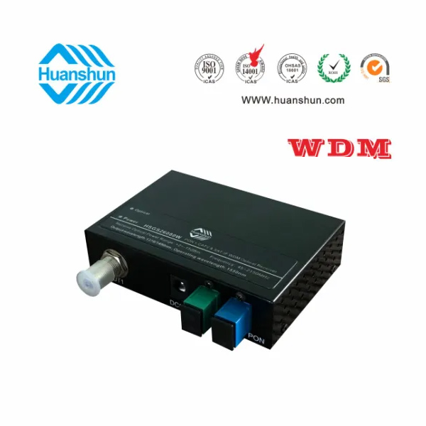 HSGS26082系列CATV&SAT-IF光接收機是一款FTTH型CATV+SAT IF高性能光傳輸設備,適用于有線電視和衛(wèi)星直播電視同網(wǎng)傳輸。本機選用高帶寬、高靈敏度光電管和低噪聲匹配電路,全鉮化鎵IC放大,光接收范圍-15~+2dBm,光控AGC-8~0dBm/RF80dBuv恒定輸出。為方便用戶使用,本機還在面板上設有工作電源和光功率接收監(jiān)測LED指示燈。HSGS2608W為WDM型CATV&SAT-IF光接收機,它工作于CATV1550nm段和PON段1490/1310nm段,用WDM波分復用技術(shù)分離出1540~1565nm波長作CATV光信號接收,把PON段1490/1310nm分離到PON端口,以作PON下聯(lián)到E/GPON ONU。