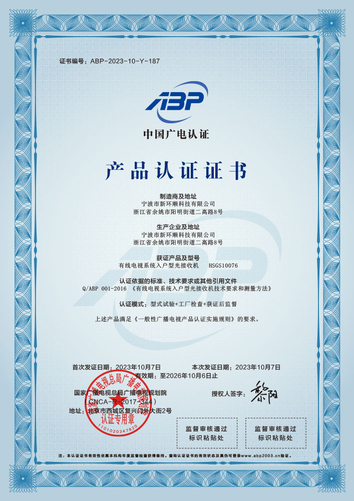 入戶型光接收機認證
