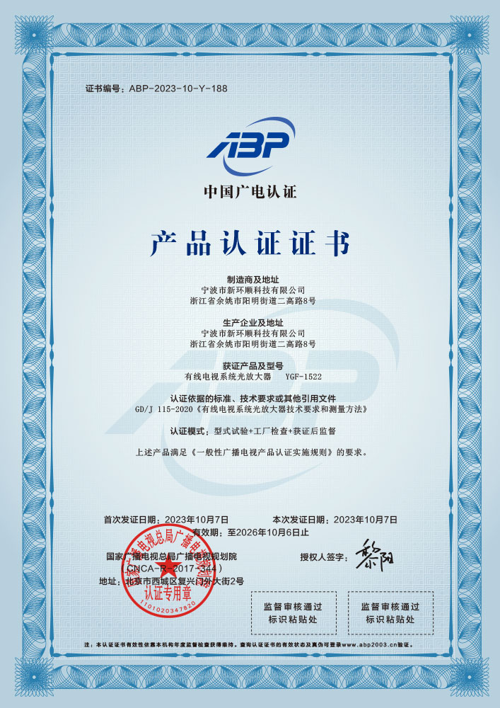 有線電視系統光放大器認證